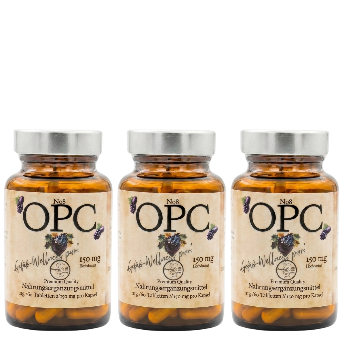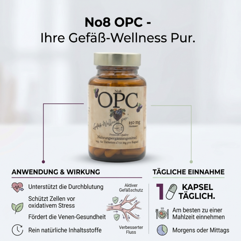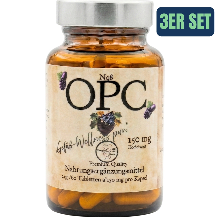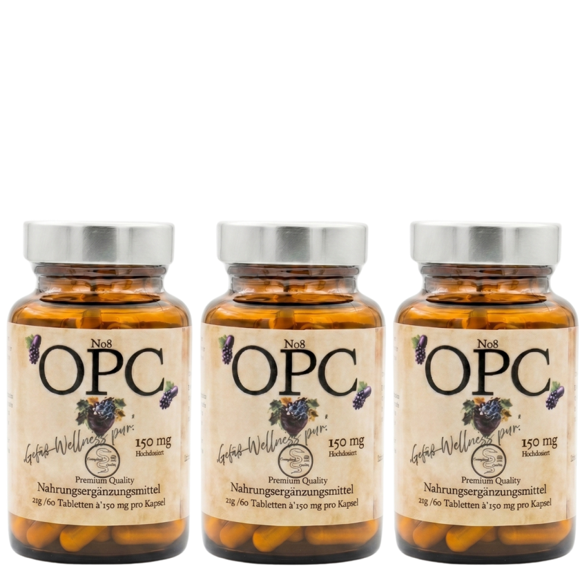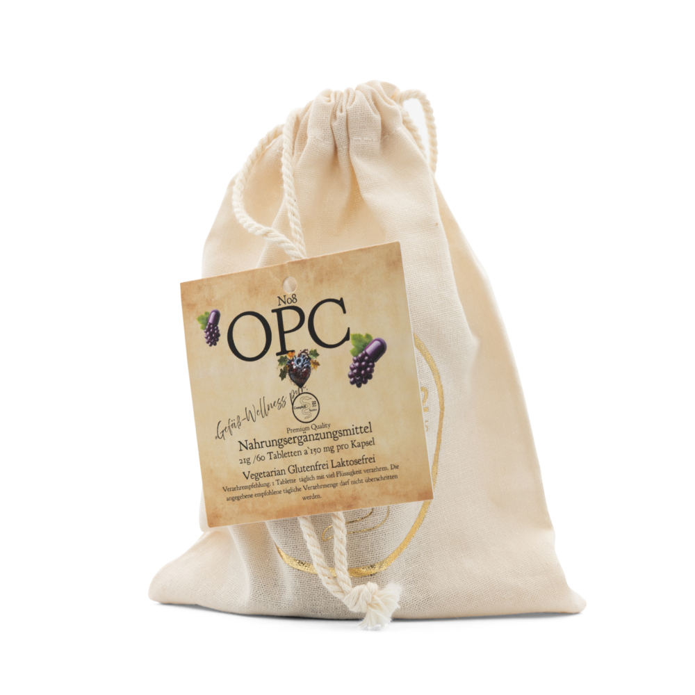 OPC steht für oligomere Proanthocyanidine, eine Gruppe von starken Antioxidantien, die in sekundären Pflanzenstoffen vorkommen, insbesondere in Traubenkernen. OPC schützt Zellen vor oxidativem Stress, der durch freie Radikale verursacht wird.