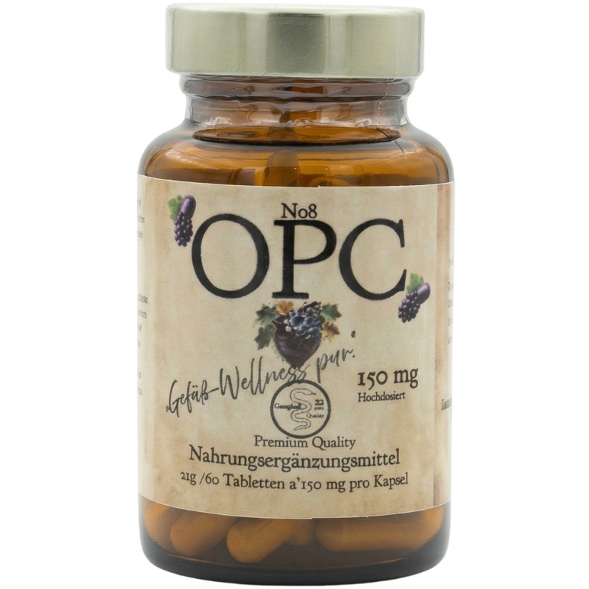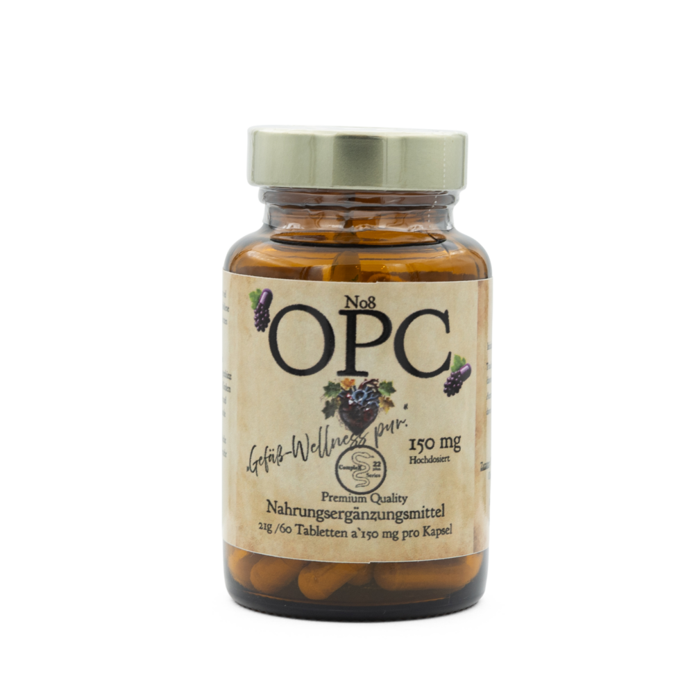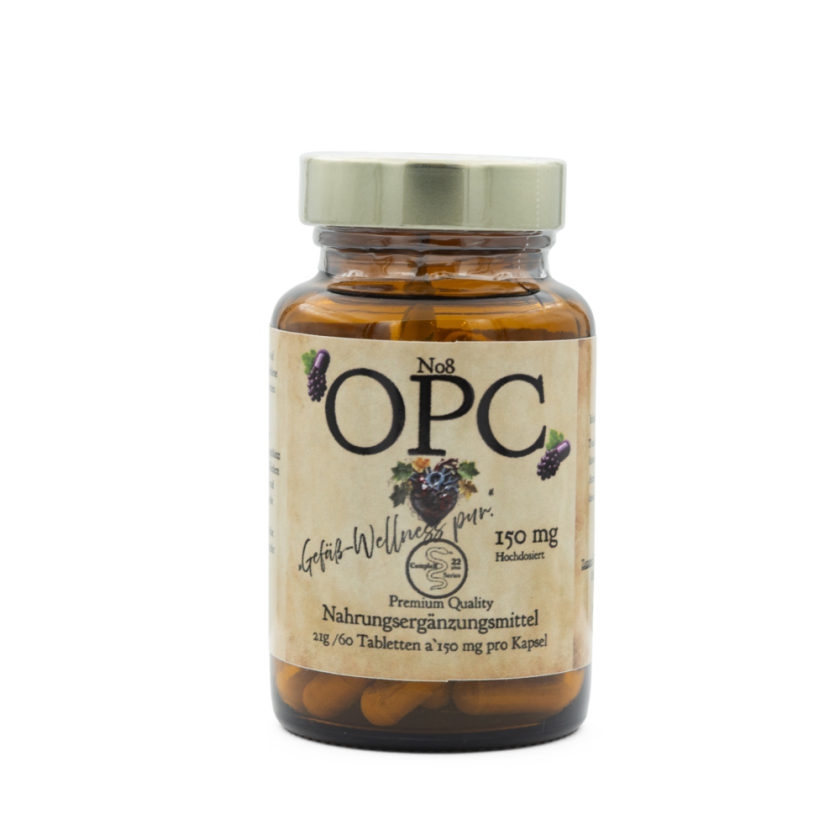 OPC steht für oligomere Proanthocyanidine, eine Gruppe von starken Antioxidantien, die in sekundären Pflanzenstoffen vorkommen, insbesondere in Traubenkernen. OPC schützt Zellen vor oxidativem Stress, der durch freie Radikale verursacht wird.